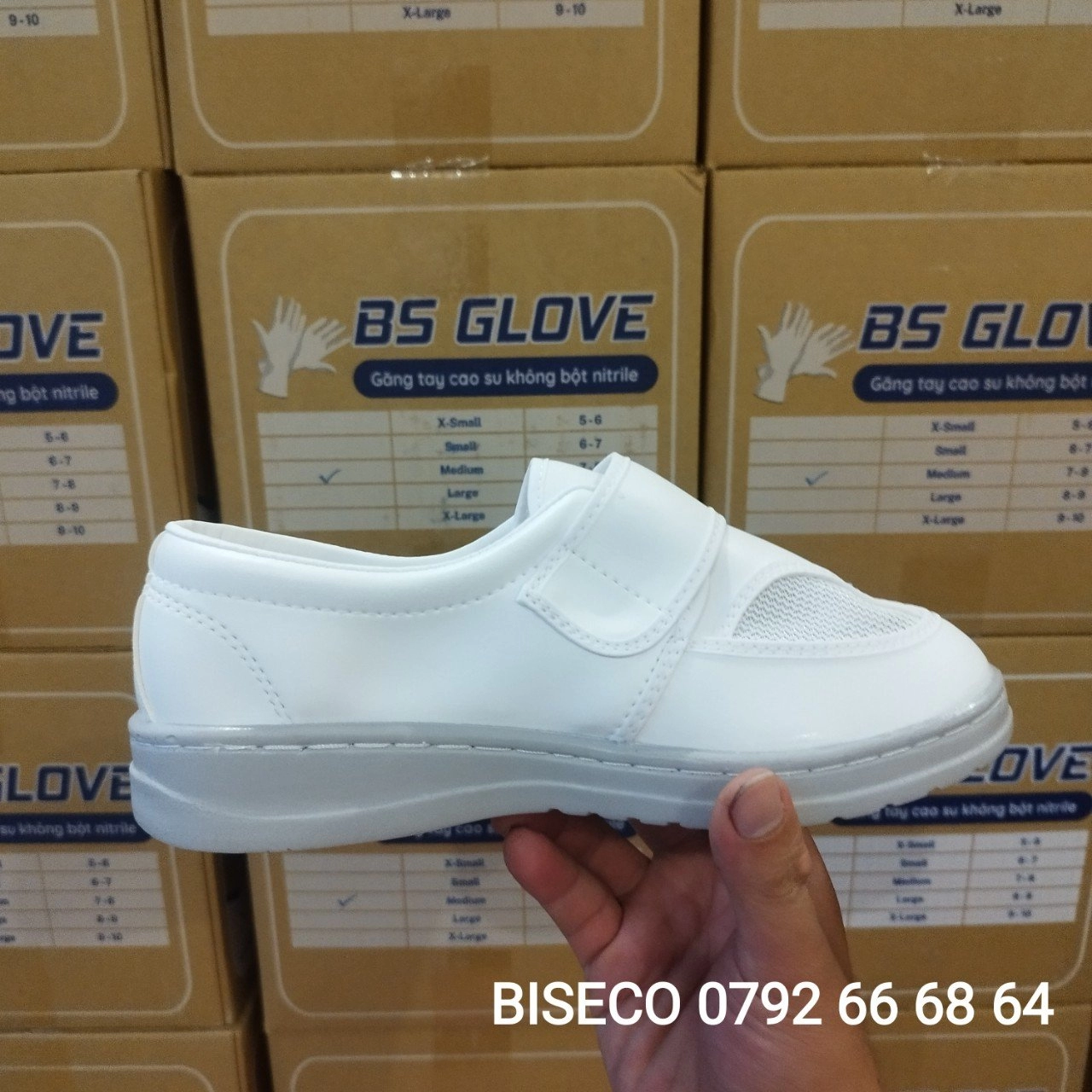 - Giày bảo hộ lao động dùng trong phòng sạch tĩnh điện. An toàn trong môi trường phòng sạch tĩnh điện. - Với thiết kế gọn nhẹ, ôm sát chân người dùng, giúp linh hoạt trong từng bước đi, đồng thời giữ ấm chân trong điều kiện làm việc ở nhiệt độ thấp. Mẫu giày này được sử dụng rộng rãi tại các công ty/ nhà máy/ phòng thì nghiệm - Phù hợp cho sản xuất sản phẩm trong các ngành thực phẩm , dược phẩm, phòng sạch, tĩnh điện - Thiết kế tổng thể băng vải chống tĩnh điện nhập từ Hàn Quốc - Đế bằng vật liệu PU, Upper làm bằng PVC - Vòng cổ giày được làm bằng mút cao cấp chống mỏi, giúp chân đi thoải mái - Size 38 - 44 ---------------------------------------------------------------------------------------------------------------------------------------------------------------------